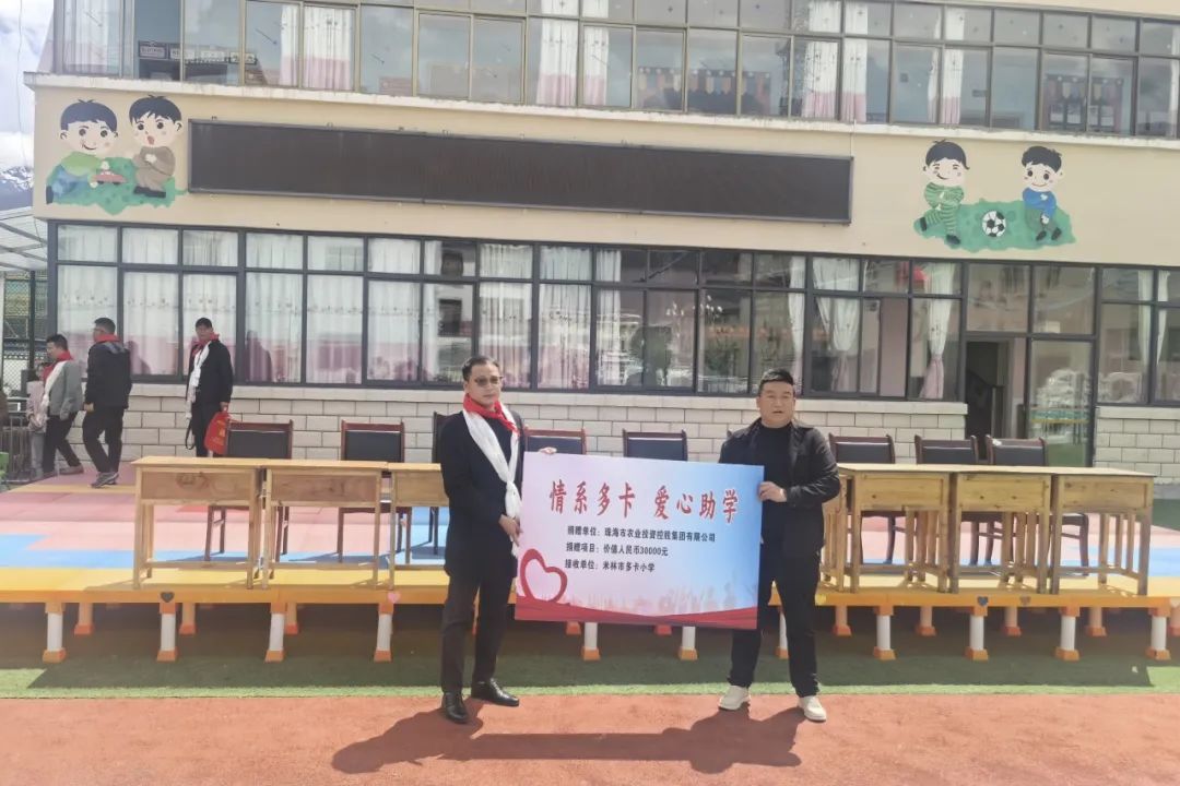 5月27日,六一国际儿童节前,乐动(中国)集团柔性援藏人才代表集团,赴西藏米林市多卡小学开展爱心捐赠活动,向学校师生捐赠了价值3万元的牛奶、面包等营养零食大礼包,为高原学子送去珠海的亲切问候和节日祝福。