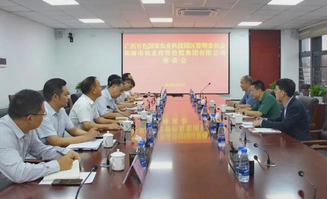 5月9日上午,广西百色国家农业科技园区管理委员会主任王晓一行到乐动(中国)农产品物流园调研参观并在农控集团会议室交流座谈。农控集团党委书记、董事长张凡,副总经理肖军参加座谈会。
