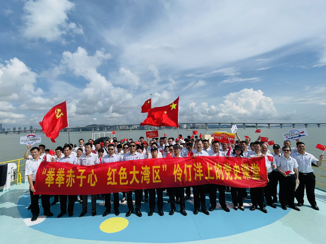 7月16日上午,农控集团本部党支部、食出公司党支部及市场集团党总支联合组织全体党员干部开展“拳拳赤子心,红色大湾区”——伶仃洋上的党史课堂主题党日活动,在游船上欣赏风景的同时,共上一堂“有风景”的党史大课。集团党委副书记刘国涛、纪委书记刘志标及副总经理肖建波出席本次活动。
