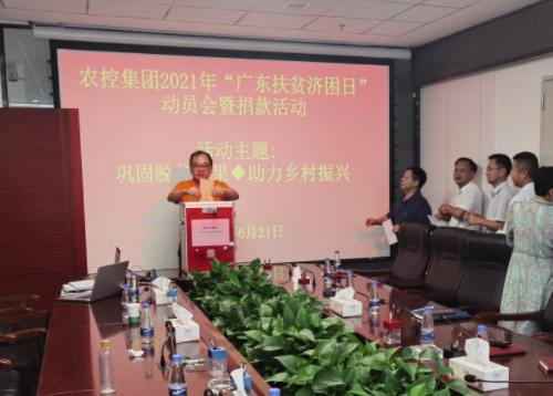 为贯彻落实习近平总书记在全国脱贫攻坚总结表彰大会上的重要讲话精神和市委、市政府工作部署,6月21日上午,农控集团召开2021年“广东扶贫济困日”动员会议,集团领导班子、各部门负责人、二级企业负责人参加会议。