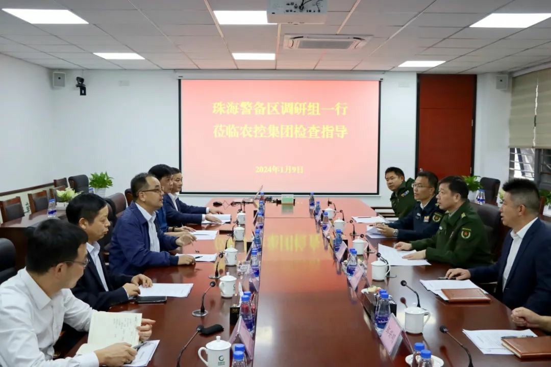 1月9日,珠海警备区大校政治委员占克峰一行到农控集团开展武装工作调研活动,并实地察看了珠海市农科中心学生国防教育训练基地。市国资委党委委员、副主任、市直人武部部长张新刚,农控集团党委书记、董事长、武装部部长张凡,党委副书记刘国涛等同志陪同调研。